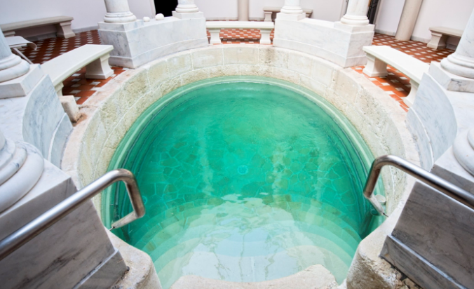 Circuitos hidrotermales, hammam, saunas, cinco piscinas romanas termales y piscinas exteriores.